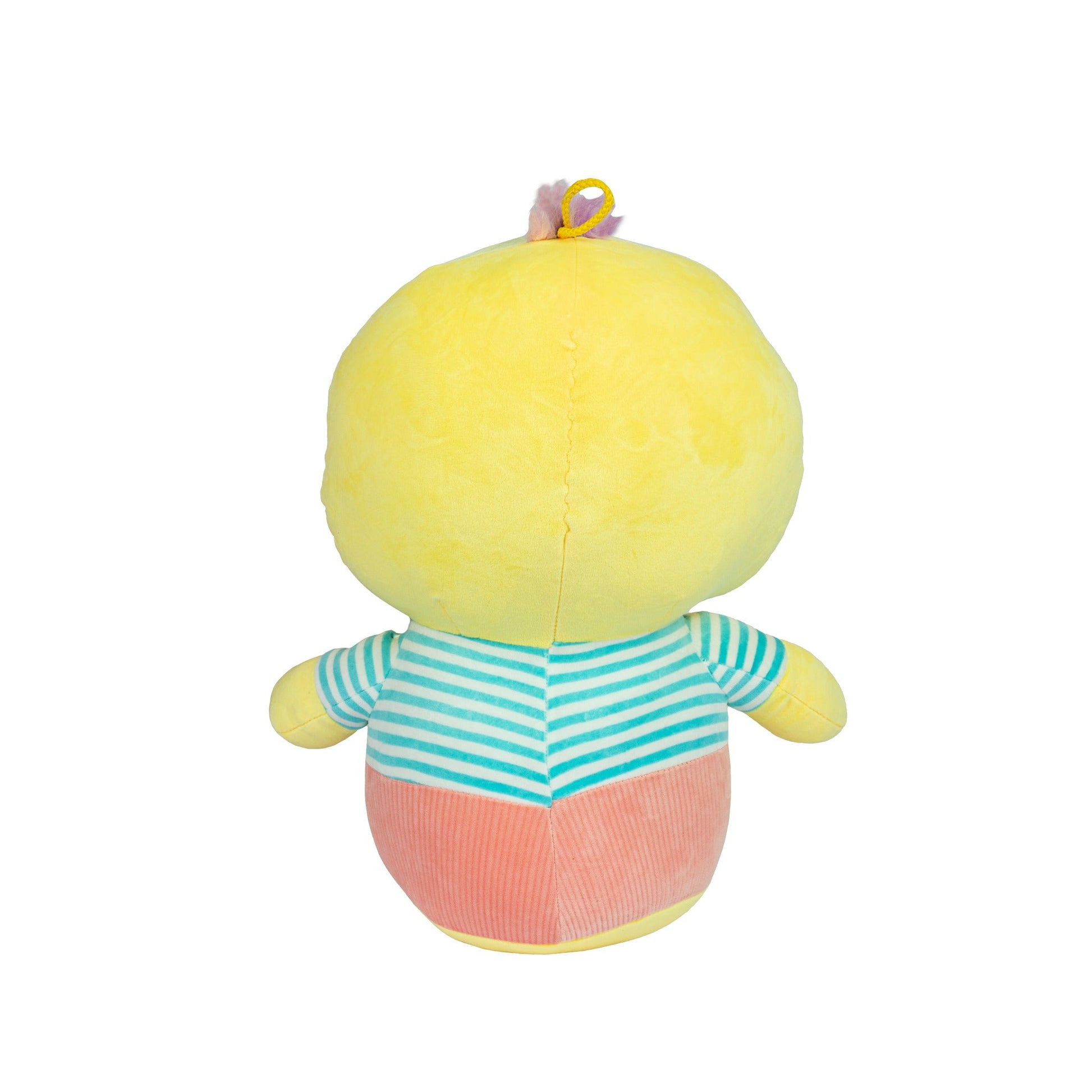 Vorteilsschlagzeilen mit Beschreibungen: Niedliches und liebevolles Design: Diese gelbe Ente ist nicht nur weich und kuschelig, sondern auch ein niedlicher Begleiter für Ihr Haustier. Das gestreifte Shirt und die rosa Hose verleihen ihr einen besonderen Charme, der sowohl Kinder als auch Haustiere begeistert.